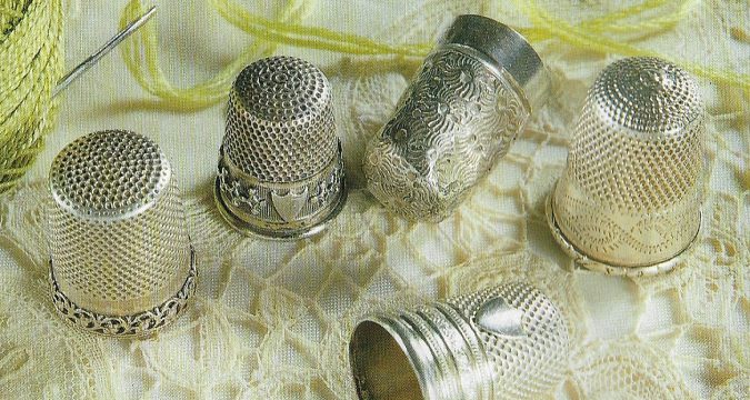 Con il passare del tempo, il ditale è stato spesso associato all’arte del cucito e alla raffinatezza tipica degli accessori casalinghi. Il periodo compreso tra il 700 e l’800 rappresenta un momento cruciale: quelli in argento, particolarmente ricercati, richiedevano un sistema di controllo tanto che in Gran Bretagna nel 1883 fu introdotta l’obbligatorietà della numerazione e registrazione di ogni pezzo prodotto. La varietà dei materiali utilizzati si è via via ampliata: esistono esemplari in vetro, madreperla, tartaruga e legno, alcuni ornati con pietre preziose. A differenza di altri oggetti in oro e argento, non è possibile fare riferimento ai punzoni per la loro autenticazione. Infatti, una legge anglosassone del 1738 esentava il fabbricante dall’obbligo di apporre il marchio per ditali e altri oggetti con peso inferiore a 16 grammi. Nel corso degli anni abbiamo avuto modo di recuperarne e conservarne in Collezione 75 per la precisione; di varie forme e fogge, trovati all’interno di cassettoni o comò insieme a fili da ricamo e altri attrezzi per il cucito o dentro a deliziose scatole da pasticceria mentre i più “preziosi” racchiusi in scatoline di vetro con nastri di seta eseguiti dalle suore o in piccoli scrigni d’argento con la chiave (solitamente dati in dono dalla mamma alla figlia)