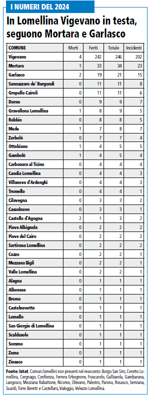 La Lomellina torna a fare i conti con la strada. Un anno di statistiche, quello del 2024, che riporta numeri duri e difficili da ignorare: più incidenti, più feriti e ancora troppi morti. L’Istat ha aggiornato le rilevazioni sugli incidenti stradali con lesioni a persone, offrendo il dettaglio provinciale, e il