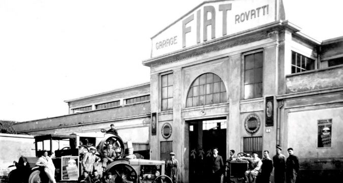 1935 – Operai in posa davanti al Garage FIAT Rovatti. Foto di Sandro Rovatti